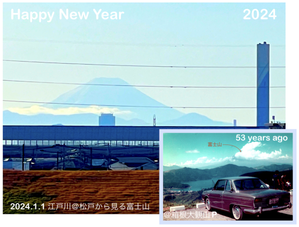 元旦の午後、個人的ではありますがウォーキングに恒例の江戸川へ、いつものように富士山を拝むことができました。